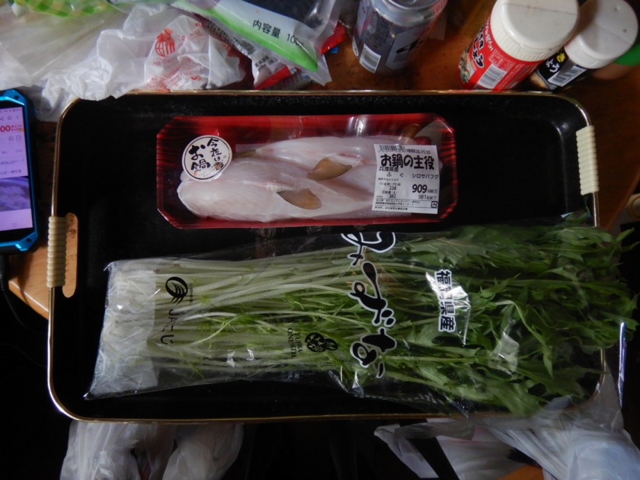 釣友MQ氏のログを徘徊していると、釣獲したハタの水炊きの調理記事があったので、私も早速、試すべく旬の走りのシロサバフグと水菜をトライアルにて購入。