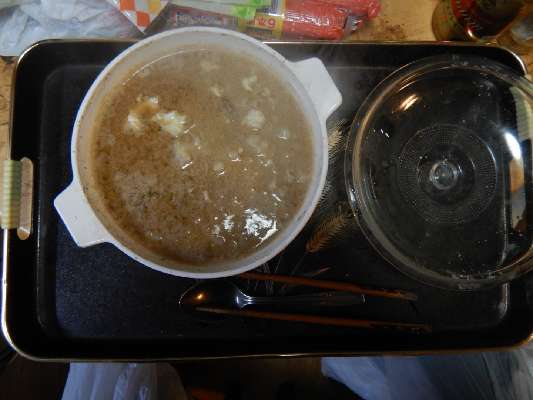てっちりの具材を食べ尽くしたのでポン酢醤油を鍋に戻して白飯と溶き卵を投入しひと煮立ち、クロサバフグ雑炊の出来上がり、またこれも私の舌では、シロサバフグと変わらない味に感じました。