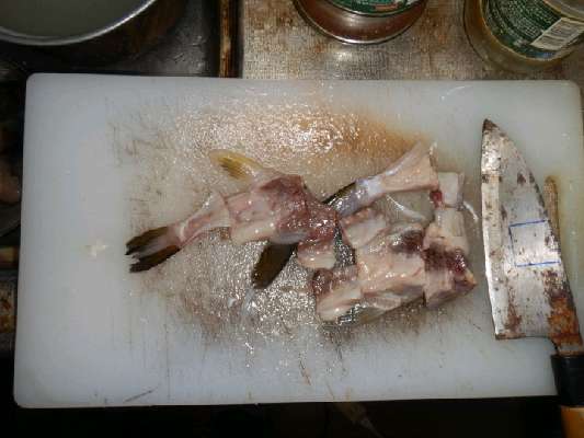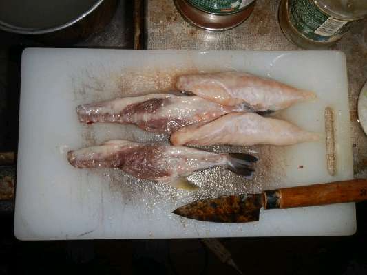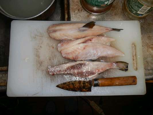 今回は、てっちりの他にてっさも調理するので、1尾は3枚下ろしからのぶつ切り、1尾は3枚下ろしからの柵取りにしました。