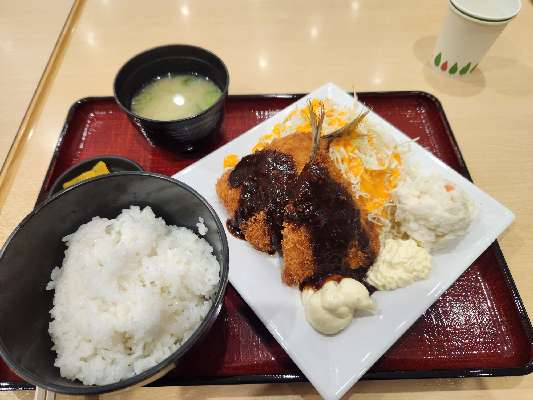 アジは釣れなかったので、帰りはいつものところでアジフライ定食