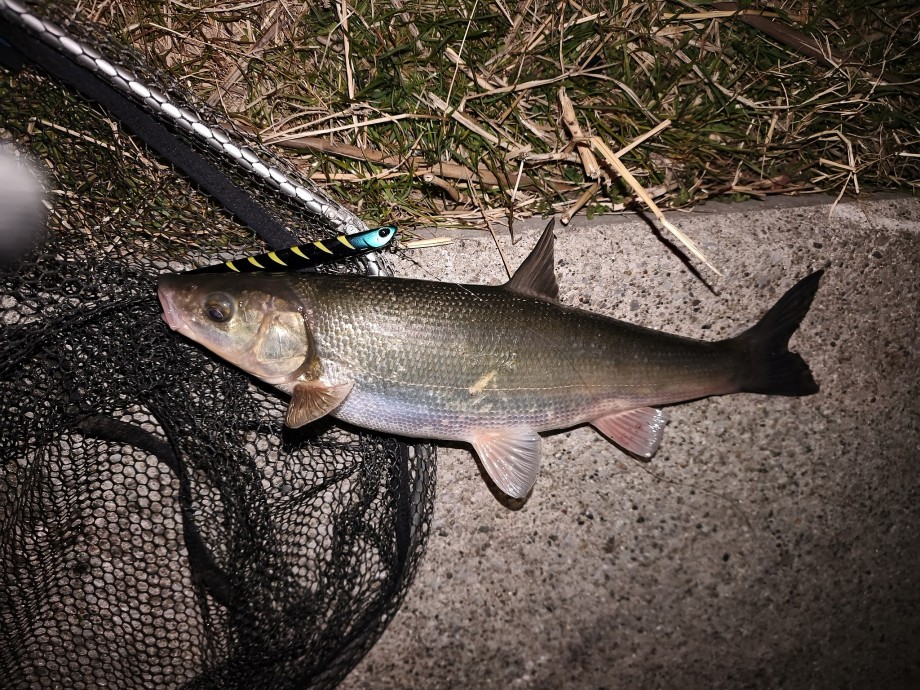 水面下で何かを捕食している魚がいるので、しつこくルアーを流してようやく釣れたのは立派なウグイでした
