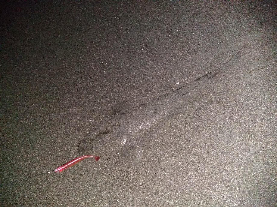 上がってきたのは頭デカイブリブリなマゴチ54センチでした(≧▽≦)