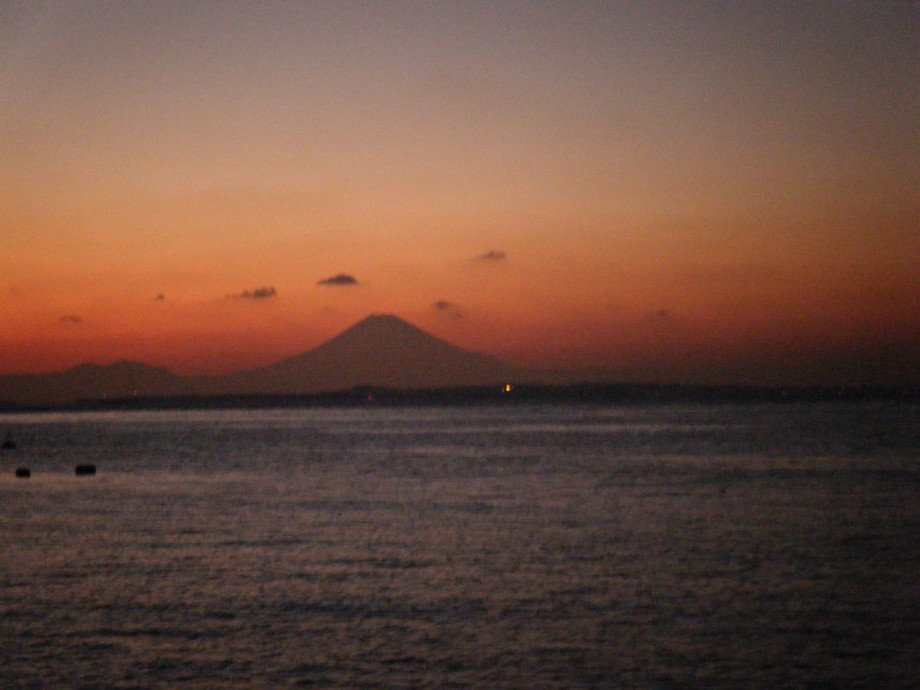 夕日に写しだされた富士山がきれいだ!