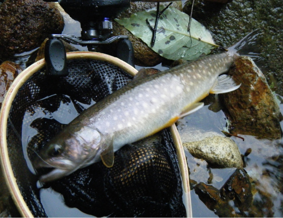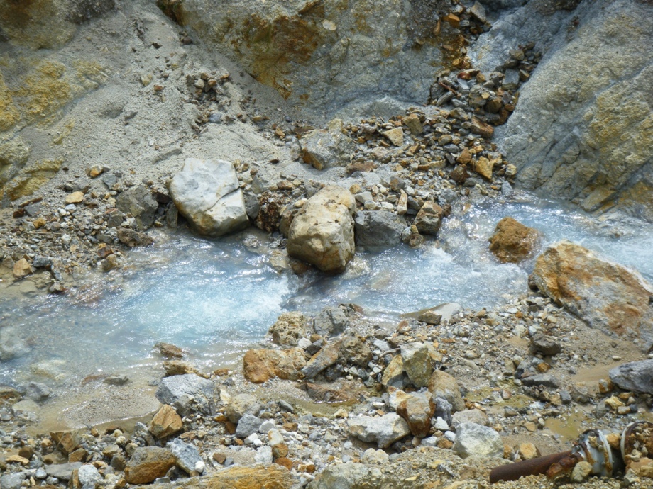 画像の右斜面の白い場所が温泉が湧き出しているので、ここら辺は魚はいません
