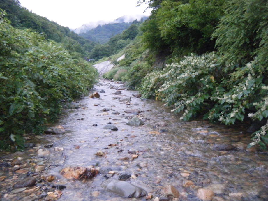 宿の目の前に川が流れているのだが強酸性の温泉のせいで魚は住んでいないようだ、