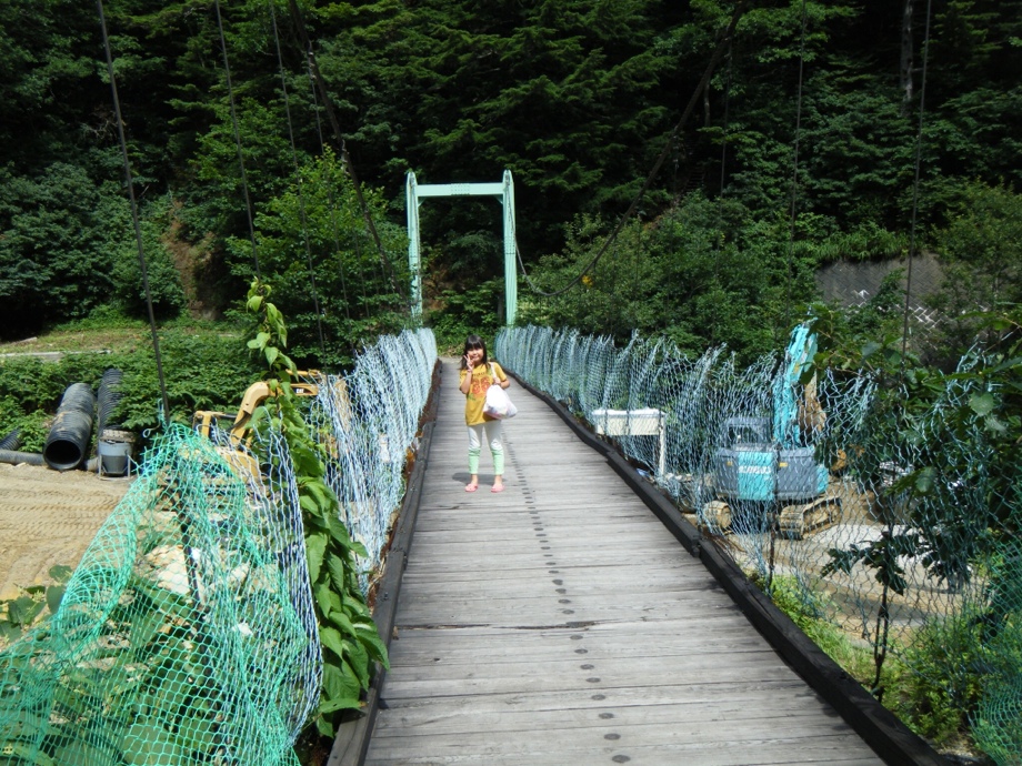 吊橋を歩いて渡り、1湯目の姥湯温泉は雛形屋