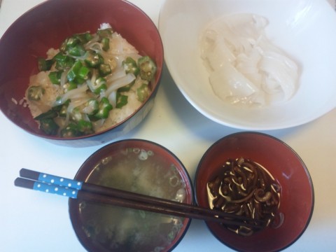 イカオクラごはんとイカ刺、イカゲソの煮付を頂きました。
