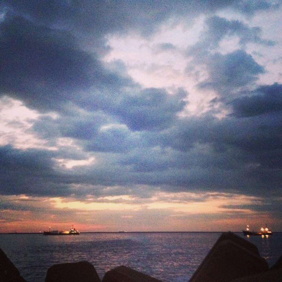 今にも雨が降ってきそうな雲からの朝焼けが綺麗です。
