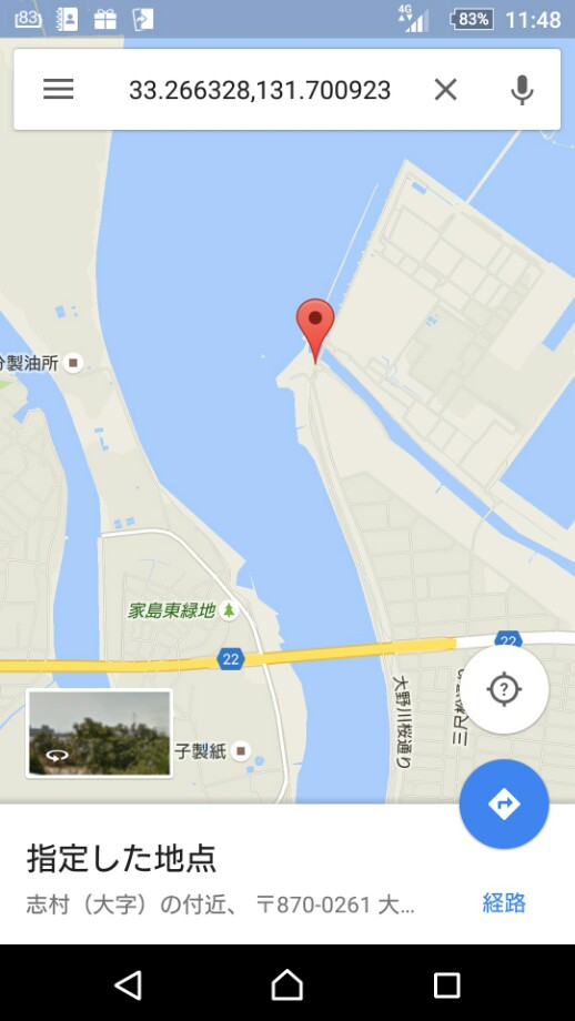 場所、大野川河口右岸、導流堤付近