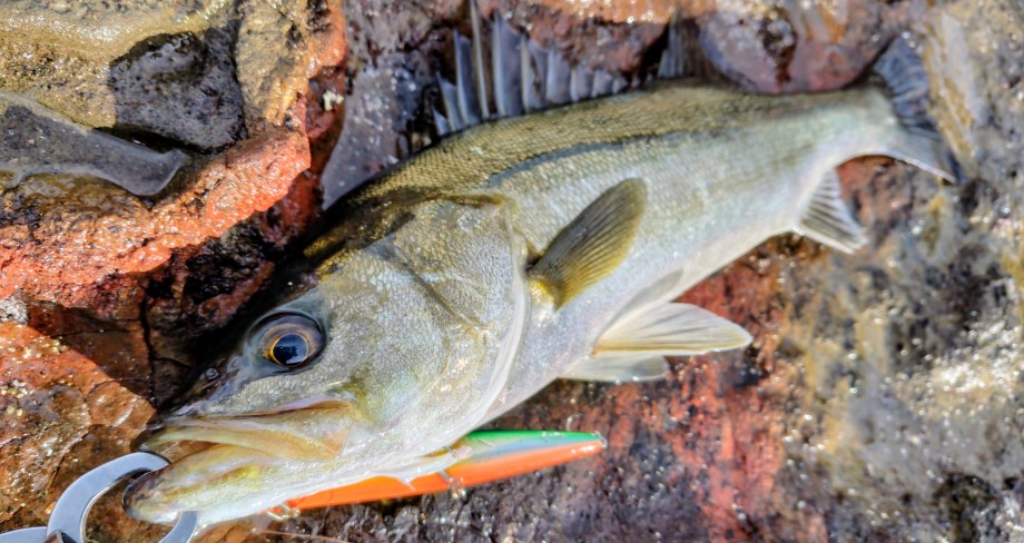 サラシが広がると、ナミノハナがとびだして数匹のシーバスがヘッド&テイルで飛び出す。(これはヒラっぽい)
