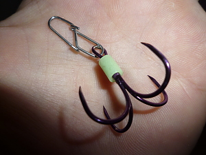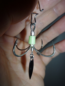 ちなみに、団長ジグなどの動きの少ないジグには、ブレード付きのフックを使うことも。