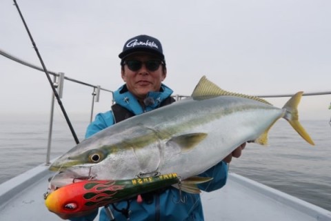 でも風が7.8.9m吹いてて1.5ノット前後は流れる上に波高50センチから1mのいわゆるババ荒れ状態。でも船が大きいから揺れ等は全然楽勝でした。フルキャストせずに、40m前後までに落として至近距離で、丁寧に丁寧に一回一回入力を入れて行きました。