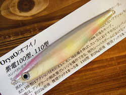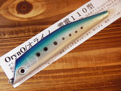 オライノ主力シャローミノーの11cmのリップレスミノー「雷電」は水面下10cm以上を得意とします。超デッドスロー~デッドスローで引き波を立てて泳ぎ、ミディアムスピードでは水面下10cmをヨタヨタ。特にスレたシーバスや水深のあるエリアでも水面まで魚を引き寄せることが可能なルアーとなっております。