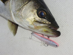 細かい振動(フラッピングアクション)が魚達の感覚器(側線)を刺激し、フラットボディの反射効果が視覚を刺激。目と側線に同時にアピール。