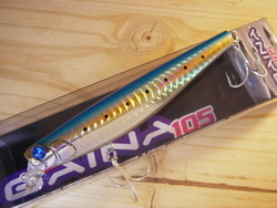 「GAINA123」との違いは「レンジ」「波動」。「GAINA105」はレンジを+10cm深く、波動をやや大きく設定しました。レンジに関しては従来の123より深く取ることで、攻めの幅を広げ、スレたランカーが好むと思われる「30cm~40cm」を強く意識しています。