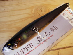 産卵を終え、死にかけて川の中層から底にかけて流れ下る様子をリアルに再現。中層~底近辺を流れ下る落ち鮎をよりリアルにイミテートするためにリビングデッドSPL.118のボディを使用し、流れの中にもまれ落ちるようにスローシンキングチューンしました。