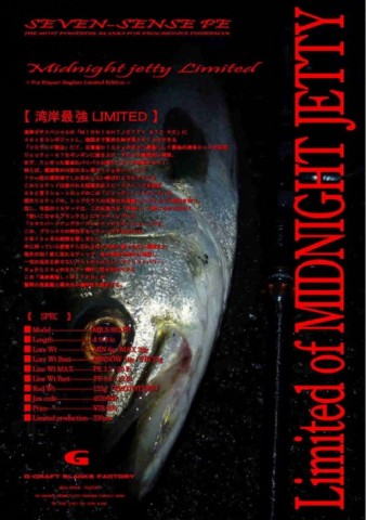 湾岸ガチスペシャルの「MIDNIGHT JETTY 872 PE」に46tをコンポジットし、極限まで贅肉を削ぎ落とすことのできる「リミテッド製法」にて、自重僅か123gのまさに最高にして最強の港湾ロッドが完成。ジェッティー87をギンギンに磨き上げ、ダルさを徹底的に排除。まず、スレきった警戒心バリバリの極小アタリを攻略するべく、例えば橋脚等の川筋のヨレ場を15gのシンペンで70m超の遠投域でしか反応しない啄ばむようなアタリをこのリミテッドは掛けれる超高反応スピードティップを設計。88と言うショートロッドのこの「ジェッティーリミテッド」は歴代リミテッド中、トップクラスの反発力を搭載したブランクス特性を持つ。但し、今回のリミテッドはこの反発力を「手強い」と感じるのではなく「使いこなせるブランクス」にセッティングした「エキスパートアングラーズリミテッドエディション」です。この、ブランクスの特性をセッティングするのには、2年10ヶ月の期間を要しました。手に持っている感覚すら忘れるほどの持ち重りのない軽量化に指先の如く感じ取れるティップ、魚の挙動を完全に制御し、一切の抵抗を許さないバットのトルクレンジとリフトパワー、6gから28gの全ルアー操作に完全対応できるこの「湾岸最強LIMITED」が驚愕の飛距離と異次元の操作性を提供する。