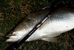 シーバスロッドにおいて、そのままのフィーリングでビッグベイトをキャストできる スムーズなロッドがありませんでした。バリトーノ93はこれらの要望を満たすために設計された、旧素材ブランクのロッドです。