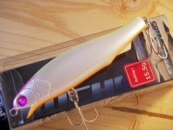 ミノーライクな細身のシェイプであるが、低速でもしっかりとアングラーに引き抵抗を与える。また高速リトリーブでは水平姿勢でアクションし、干潟などのシャローでその威力を存分に発揮する。