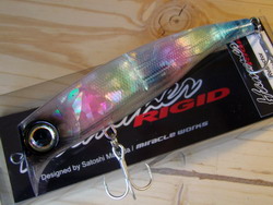 シャローゲームのパイオニア「ハンマーリジト110」から派生したクリアボディ反射板装着モデル、基本的な使用法はストレートスローリトリーブ、「ハンマー」独自の振り幅の大きなウォブリングアクションで水面直下をゆっくり泳がせます。