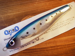 大型回遊魚を釣るために開発されたオライノ初のダイビングペンシルです。ハードウッド・ワンピースボディと強度を重視しています。万が一ルアーを破壊されても1.6mmステンレスワイヤーシャフトがターゲットを逃しません。