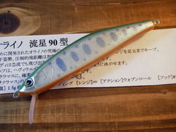 紫電90型は紫電100型よりもタイトなアクションながらS時アクションはそのまま。リトリーブスピードは少し速くすると、表層を引き波を立てて泳ぎます。