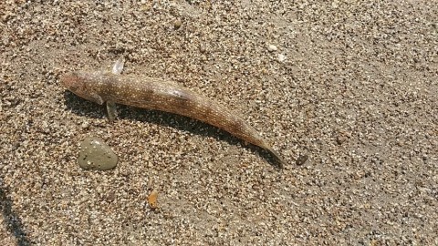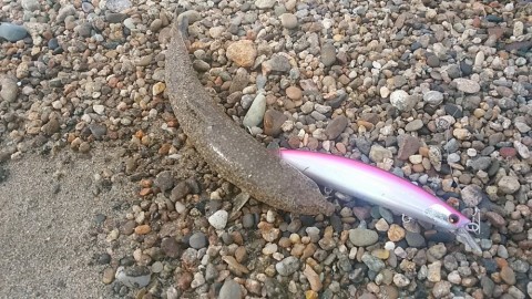 ちょっとだけ驚いたことがありました。ベタ凪ぎの釣れる気配が全くないなかで、ビクッ❗生命反応❗( -_・)?これって、もしかしてショアジギングの税金「エソ」?生まれて初めて見たし、初めて釣りました。多分、秋田には居なかった魚のはず⁉これも地球温暖化の影響でしょうか?