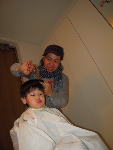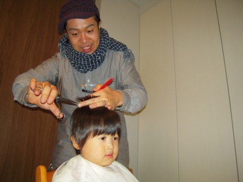 メンバーの『とーる』が息子達のヘアーカットに来てくれました