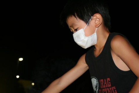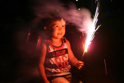 花火の時は手をピンっと伸ばし、マスクスタイル(笑)