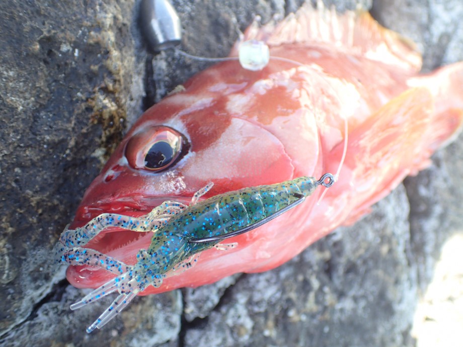 その後もアカハタとオオモンハタの釣果がありました。MODELISM-EBIの回収時のタダ巻きにオオモンハタが釣れたこともあり、アカハタからオオモンハタへとターゲットを変更し、「タギョッシュ5エヴォ(32g)」にて狙っていきます。
