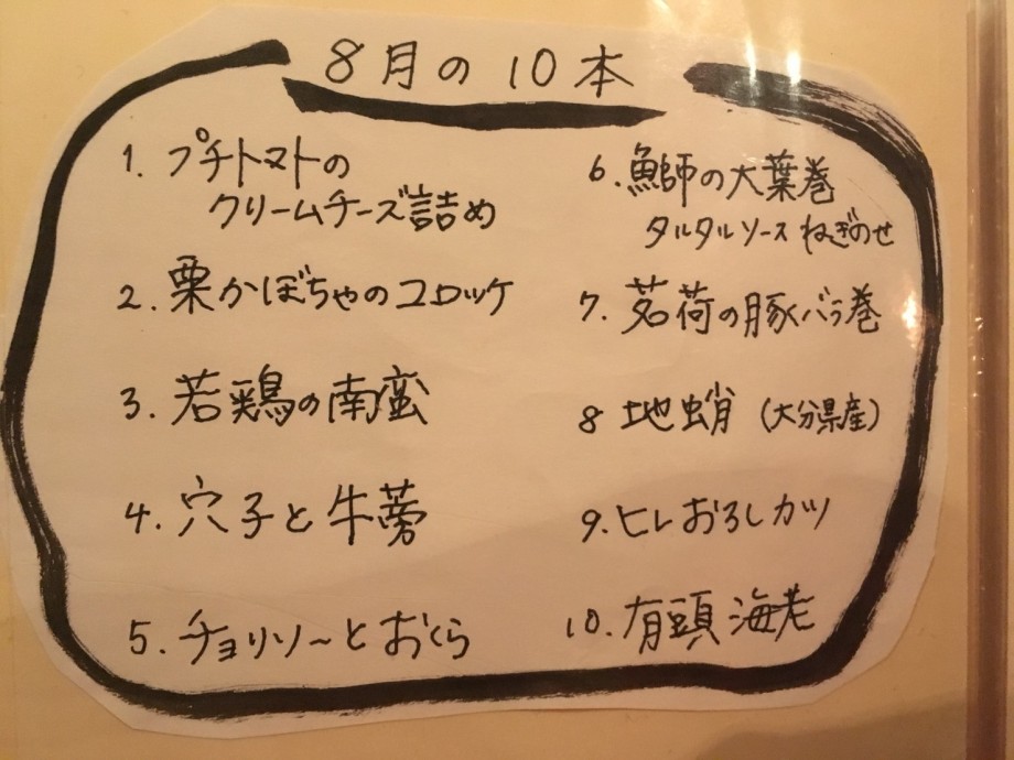 中でも気に入ったのが、プチトマトのクリームチーズ詰めと鰤の大葉巻タルタルソースねぎのせ。