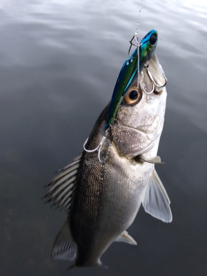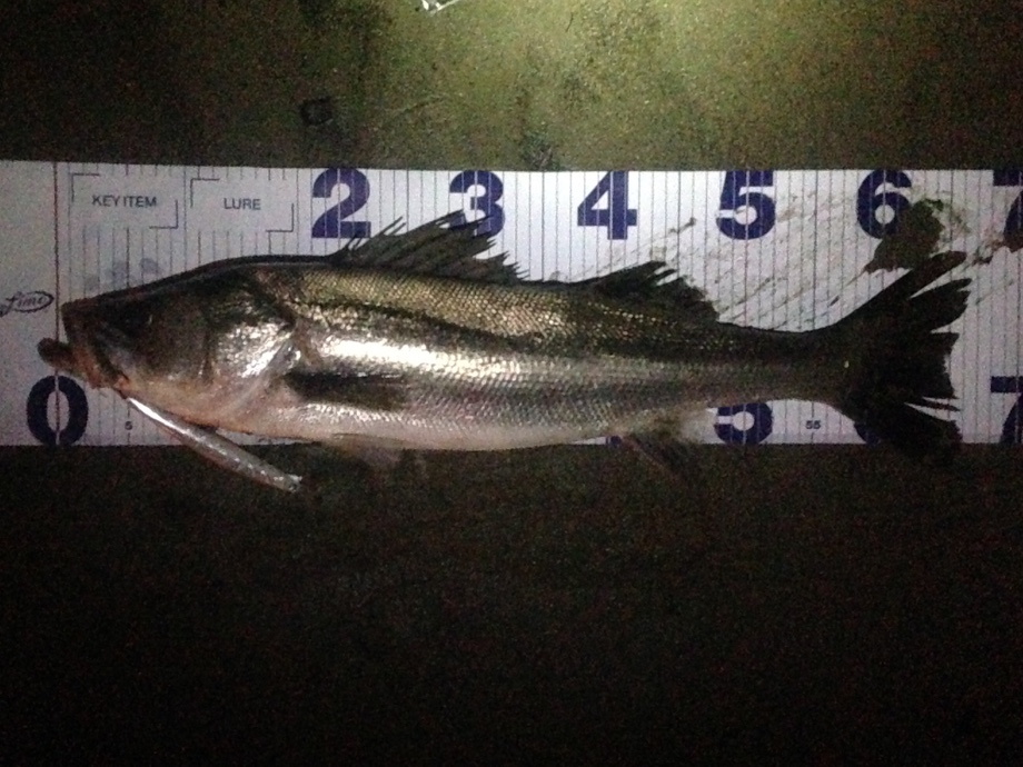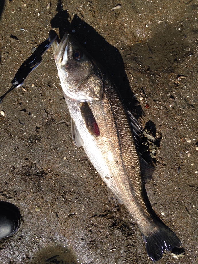 通い詰めた博多湾奥河川でヒットした初めてのスズキサイズ。