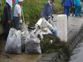 娘が学校で作った(EMダンゴ)なるものを川に流しているらしく