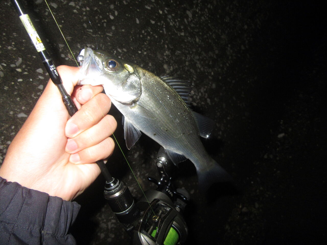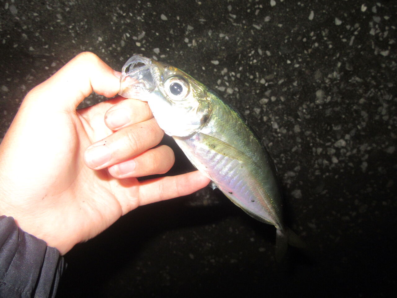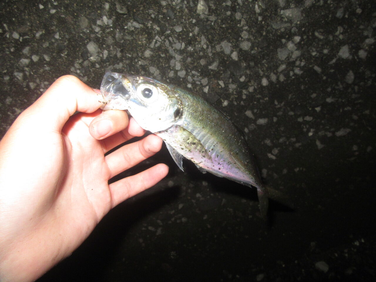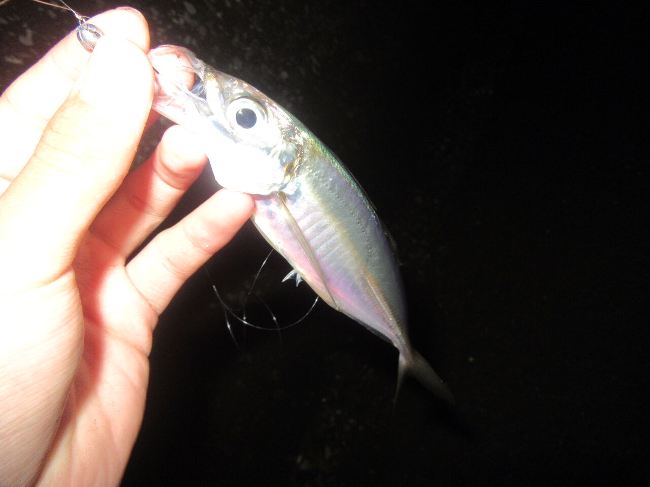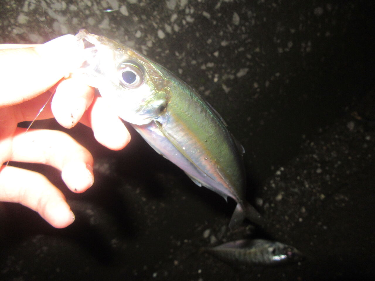 今まで、アジは常夜灯の明暗というイメージが強かったのだけど、今日はうまく流れに乗せているかどうかが大事そうだったので、普段攻めない完全に暗い方へ。
