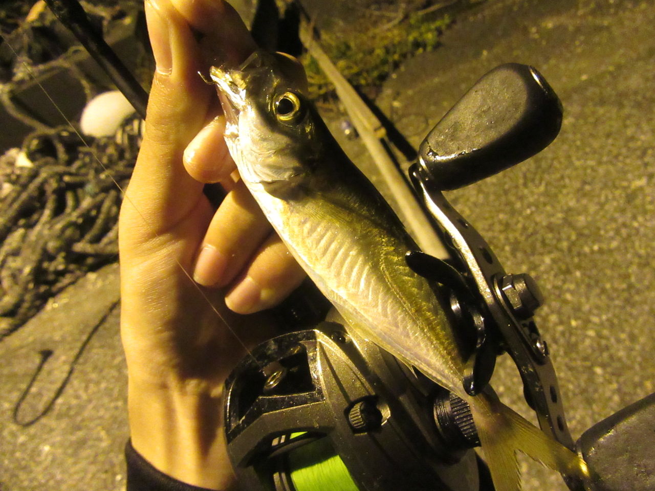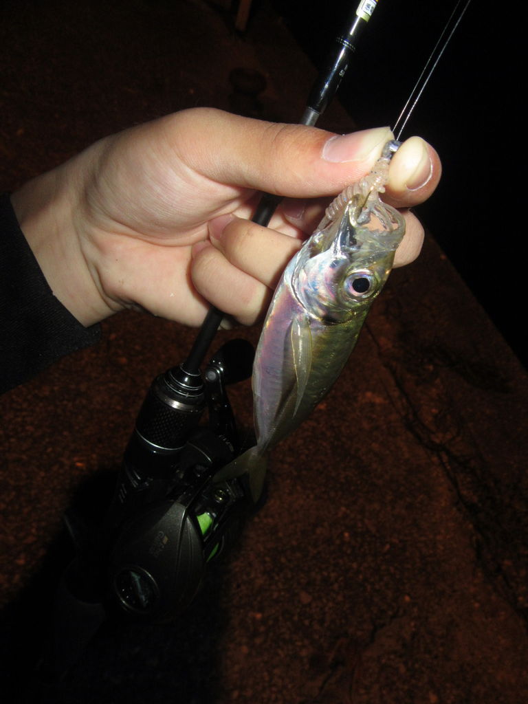 ってことで夜、漁港の常夜灯の下でジグヘッドをキャスト。