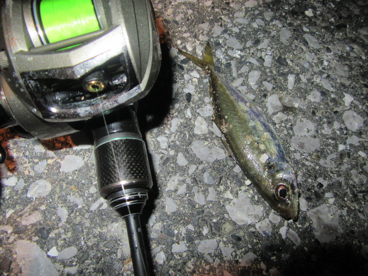 ちなみに隣の常夜灯ではカッコいいおじさんがアジングでポンポン釣っている。