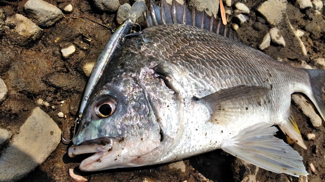 ポイントは川幅が120mほど、カケアガリ付近に石が多く沈んでいる所。