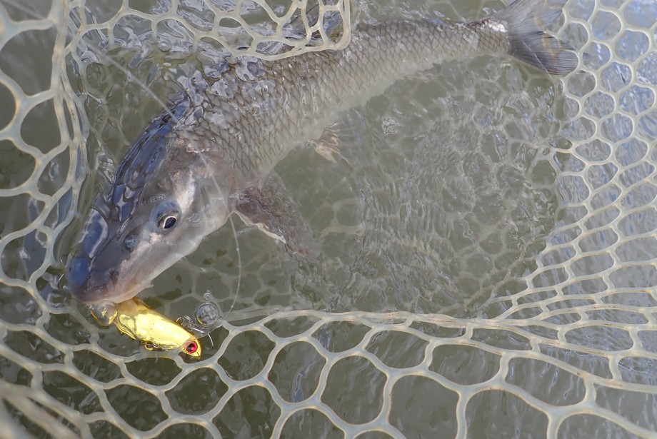 また、立ち位置を変えて....キックビートはそのままにカラーローテーションをしていくうちに...金系のカラーでバイトが出る事が多く気が付いたので....ではではと、UVメッキのゴールドに変えた一発目で..速攻Hitするも...ジャンプ一番でバラシ(>_<)