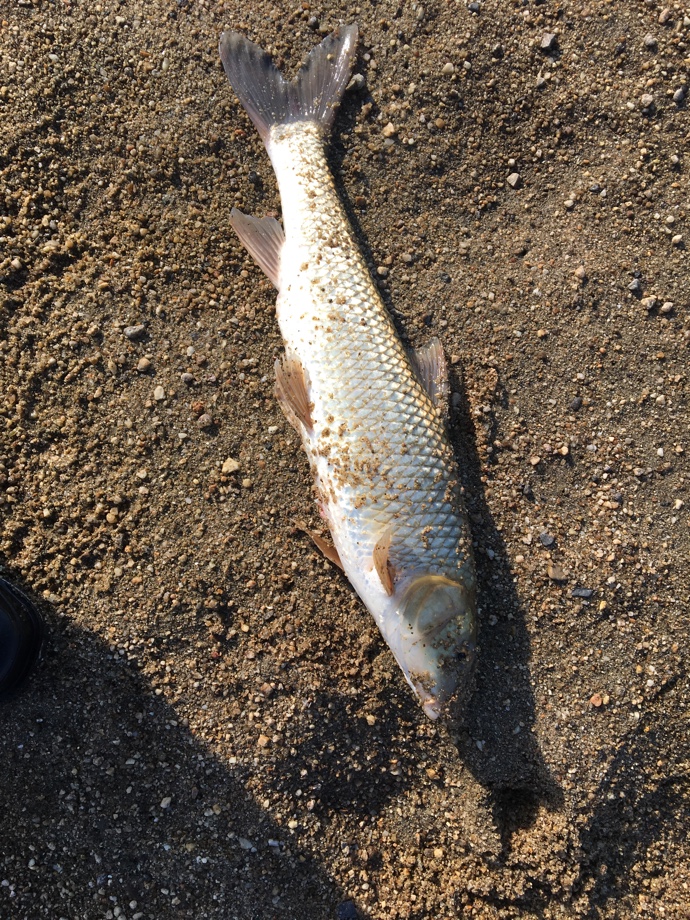 河口からベイトの様子を見ながら上がってきますと対岸に車いっぱい止まってます(^.^)