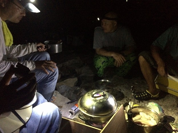 完全に日が落ちたので、ベースキャンプへ戻る。
