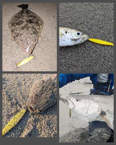 リトリーブで千鳥アクションし浮き上がり安く底を擦りにくい為、遠州サーフのような遠浅サーフでは丁度良いジグとなっております。
