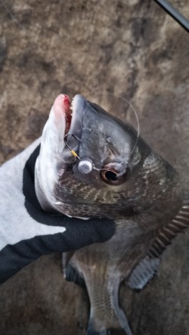 そんな袋を持って本日も最近ちょっとハマってるジグヘッド+カニ=おチヌ様 の釣行。