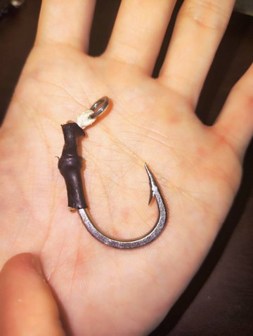 ↑3年使って曲がった針だけど、釣行後の水洗いだけのメンテナンスで一切錆びてない。