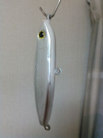 ミノーっぽいやつは下地後アルミ貼ってたまたまあった目玉つけてコーティング。ちょっと目がでかいけどいいか?