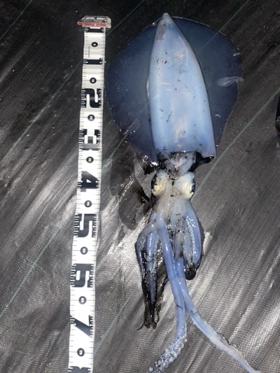 ランディングネットを構えランディングに入ろうとするが魚とは違いイカは魚とは逆で沖向きに逃げるのでネットはヤバいっ(汗)