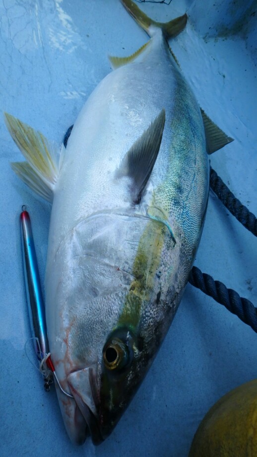 その後は船の下にジグが入るとヒットするというパターンで、ファイトはキツイし腰も痛いという感じ。。