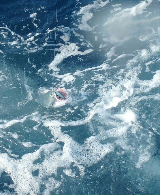 ボトムについて、向かえ潮の時に20mラインで”ゴン”私にもヒット!!!