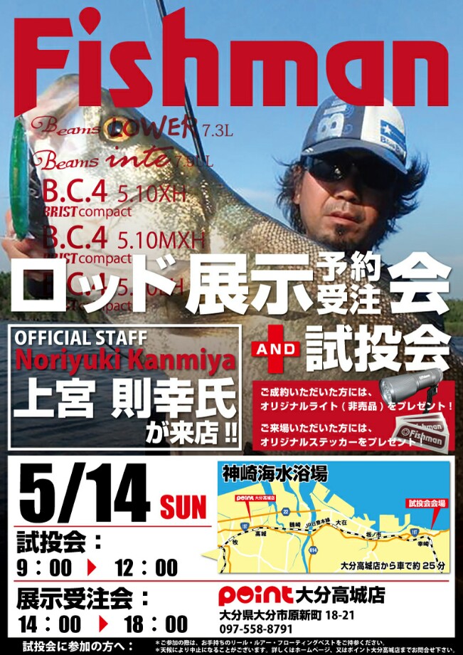 5/14(日)大分県のポイント大分高城店様にてFishmanロッド展示予約・受注会&試投会開催致します!