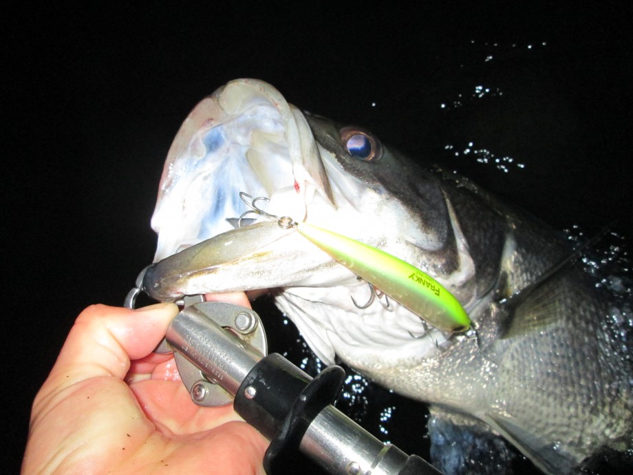 そういう場所をさけて中流から上流でセイゴを狙おうとしたわけですが、75cmほどの鱸がヒットするも、セイゴはつれませんでした。
