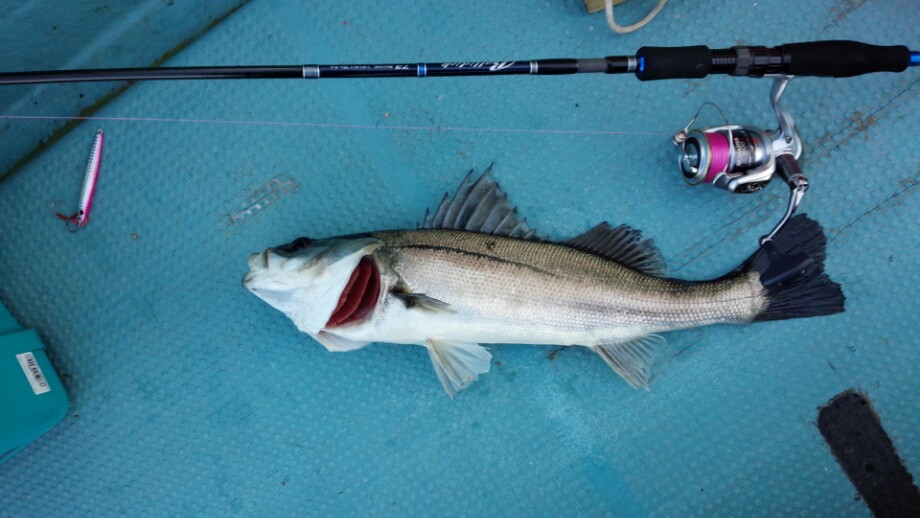 前情報で、ストラクチャーメタルジグただ巻きでシーバス爆釣とのこと。